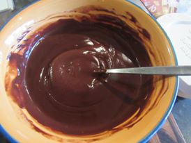 Warm the cream and arrange over the chopped chocolate, stir until the chocolate melts completely.
