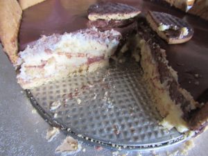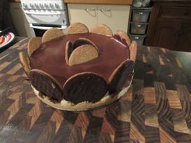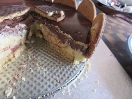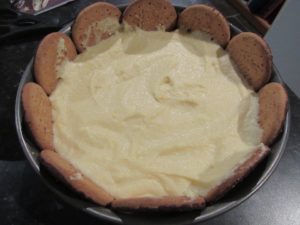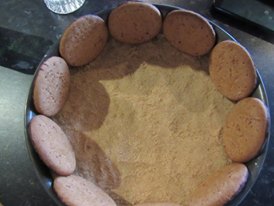 Place the biscuits around the shape around the calypso with the chocolate part out. Take the refrigerator while filling.