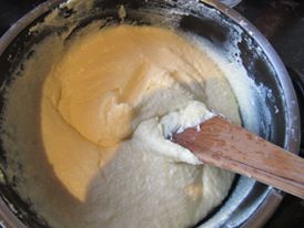 In a saucepan, add condensed milk, milk and egg yolks. Cook over low heat until thickened. Turn off the heat and add the vanilla essence.