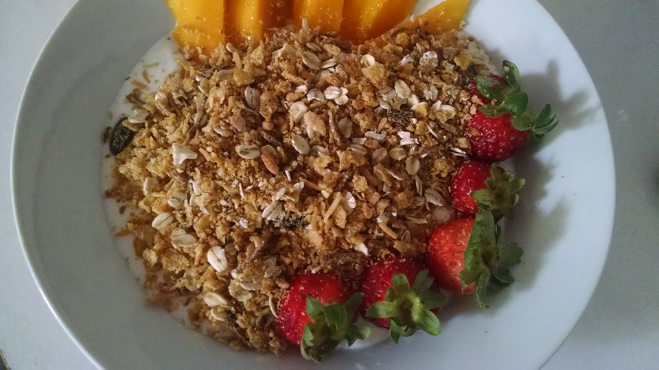 Put the milk in the microwave for 20 minutes. Let it cool until get warm. Add the natural yoghurt into it and mix very well.