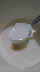 Let it rest for at least 8 hours in a in a covered bowl and covered by a sheet or towel. After that, you will mix the yoghurt with a spoon and put it in the fridge.