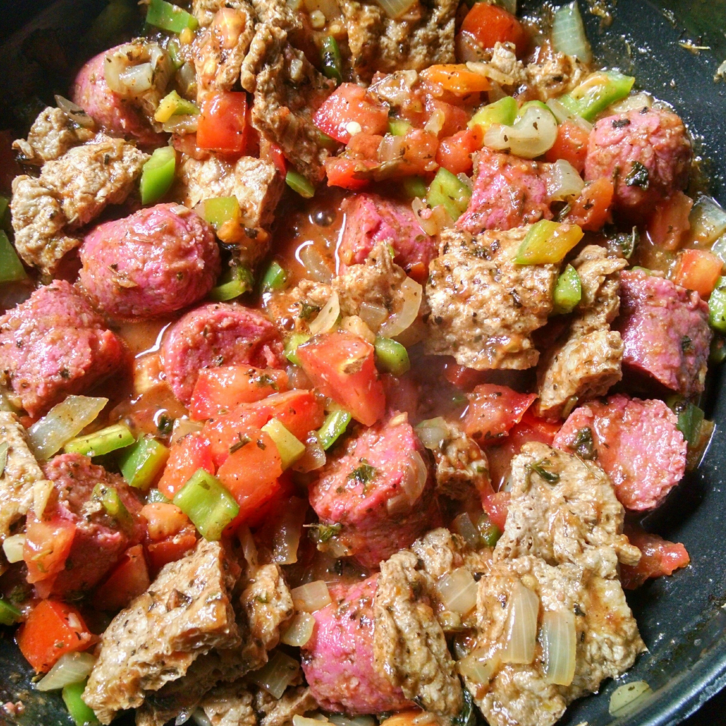 Finally add the sausage and the soy and let it cook for about 20 min, add water if necessary.